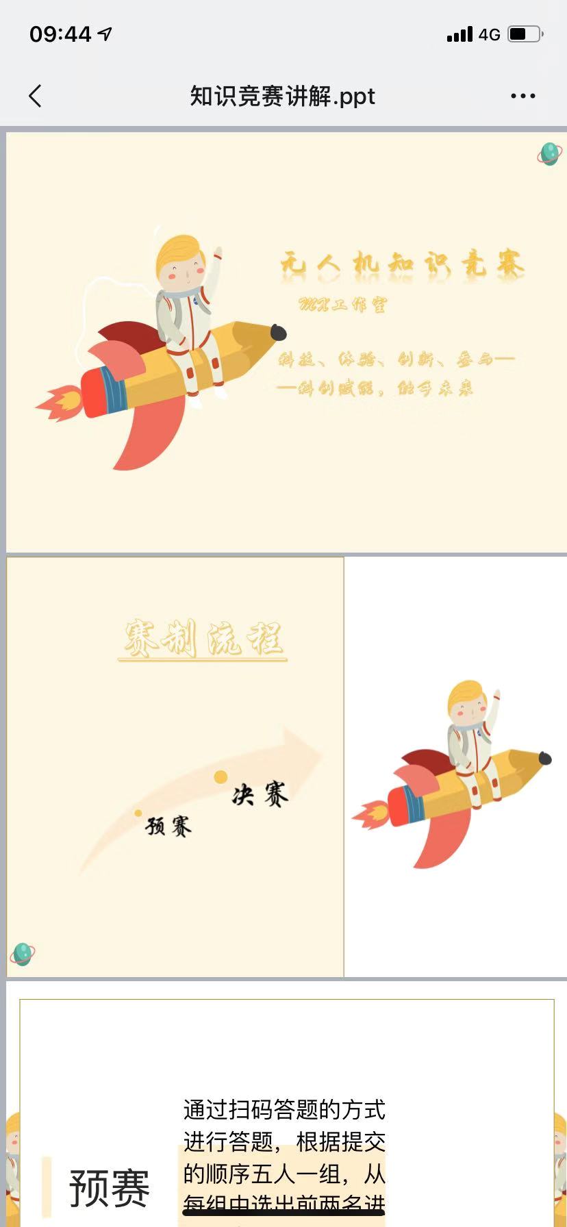 会议后半段,由工作室成员郭雅玮同学对无人机科技知识竞赛进行讲解,本次竞赛分为预赛决赛两个阶段,面向全校员工开展,初赛将从题库中随机抽取50道题进行选拔,成绩排名靠前者进入决赛,决赛获奖者颁发获奖证书及精美礼品。