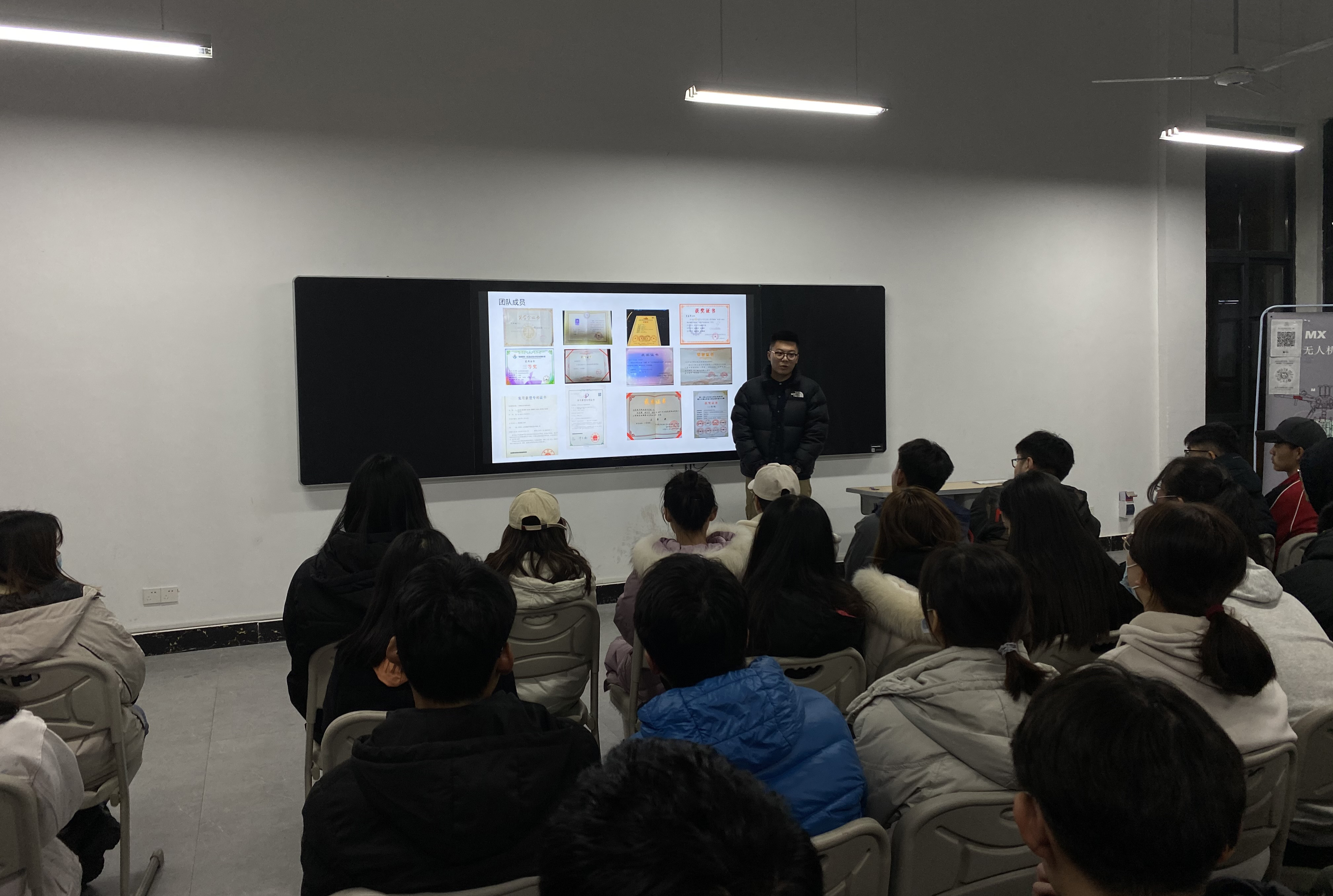 会议伊始,由工作室负责人康传明同学对工作室的工作进行总结。首先,由做有知识有感情的社团开始,简要介绍了工作室的简介及宗旨,随后细致地讲解了工作室的参赛项目、参赛过程等,并分享了他的参赛经历及体会,为同学们以后参赛提供了很好的建议和想法。